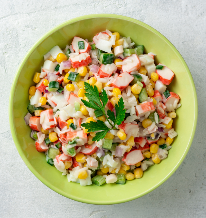 Ingrédients de la salade de riz au surimi (pour 4 personnes)