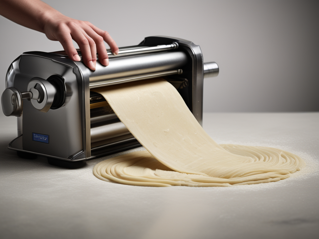 Divisez la pâte en plusieurs portions. Étalez chaque portion avec un rouleau à pâtisserie, puis passez-les dans la machine à pâtes en commençant par l’écartement le plus large. Répétez l’opération en réduisant progressivement l’épaisseur, en farinant la pâte à chaque étape pour éviter qu’elle ne colle.
