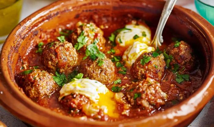 - Versez les œufs battus sur les boulettes et couvrez la poêle ou le tajine. Laissez cuire 3 minutes supplémentaires, jusqu’à ce que les œufs soient légèrement pris mais encore crémeux.