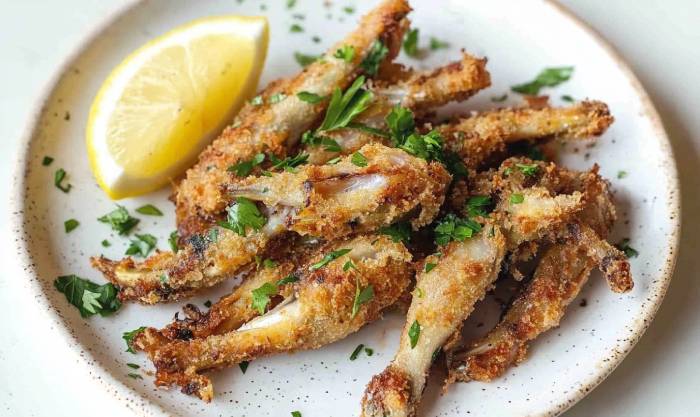 Les cuisses de grenouille, emblématiques de la cuisine française, sont ici sublimées par une panure délicatement parfumée aux herbes. Faciles et rapides à préparer, elles sont parfaites pour une entrée originale ou un plat léger accompagné d’une salade verte ou d’un riz parfumé.