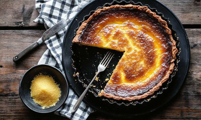 - Enfournez pour environ 30 minutes, jusqu’à ce que la tarte soit bien dorée et que la surface caramélise légèrement.